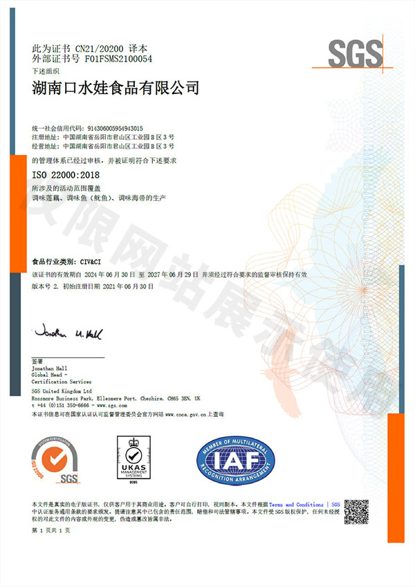 食品安全管理体系证书